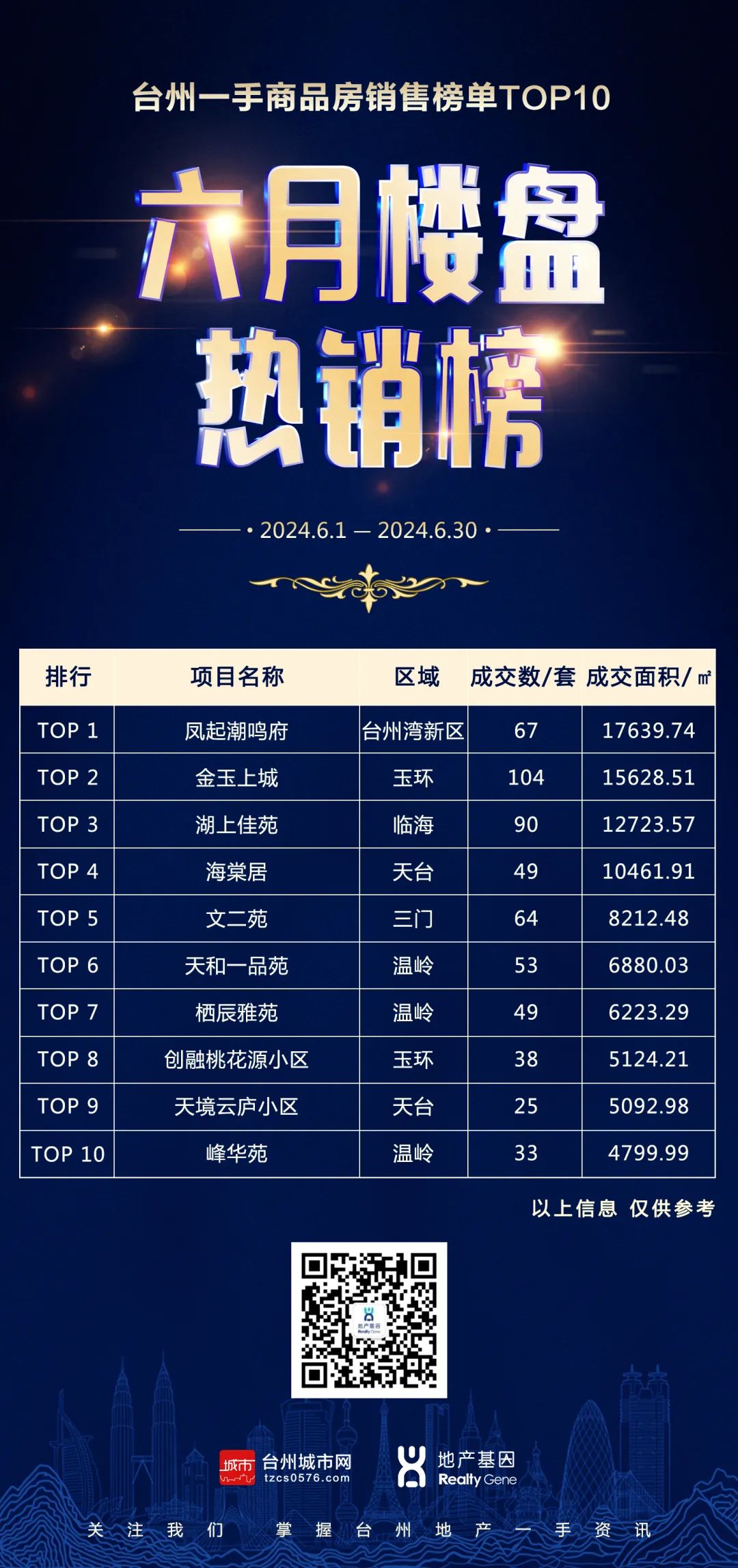臺州6月樓盤銷售數(shù)據(jù)出爐,一起來看下吧! 來源:地產(chǎn)基因