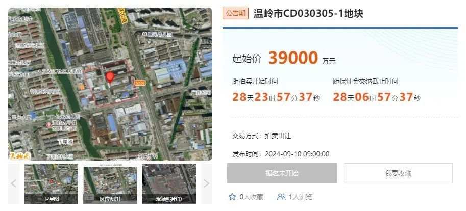 2024年9月10日,溫嶺市CD030305-1地塊正式發(fā)布出讓公告,出讓起始價為39000萬元??傆玫孛娣e49917平方米(74.876畝),用途為普通商品住房用地(二類),容積率約為:1.0<容積率≤1.35,將于2024年10月9日完成出讓。 ...