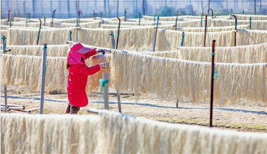通訊員 張旭潮 攝 11月20日,溫嶺市石橋頭鎮(zhèn)的農(nóng)戶趁著晴好天氣晾曬紅薯面。紅薯面是石橋頭鎮(zhèn)的特色農(nóng)副產(chǎn)品。近年來,該鎮(zhèn)扶持農(nóng)民做大做強(qiáng)紅薯面加工傳統(tǒng)產(chǎn)業(yè),通過“農(nóng)產(chǎn)品+合作社+品牌”的創(chuàng)新模式實(shí)現(xiàn) ...