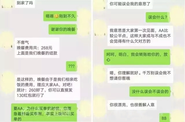 一網(wǎng)友在論壇上發(fā)帖,訴說(shuō)了自己一段奇葩的相親經(jīng)歷: 她與親戚介紹的一個(gè)男的相親,二人加了微信,約好一起吃飯。吃完飯男方搶著買(mǎi)單,女方拗不過(guò),只好讓男方付了錢(qián)。 原以為,這段相親有了一個(gè)不錯(cuò)的開(kāi)端,沒(méi)想 ...