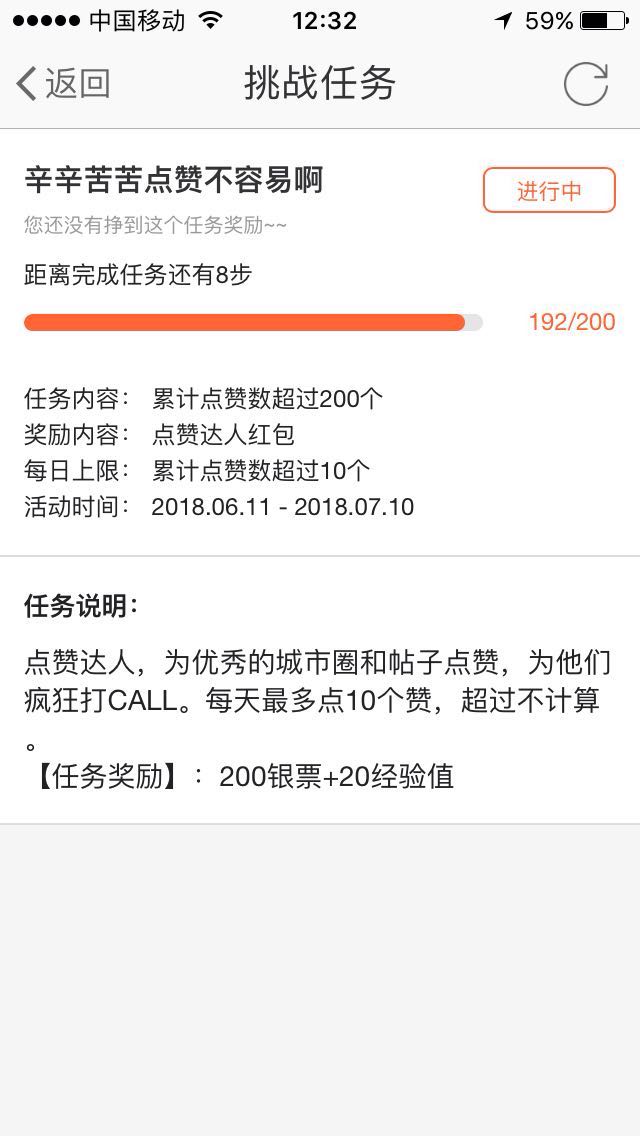 因系統(tǒng)設置問題,原“每日任務”中的“辛辛苦苦點贊不容易啊”任務于7月9日被異常終止。該任務每天最多可點贊10個,在規(guī)定時間內(nèi)累計點滿200個,即可獲得200銀票+20經(jīng)驗值 ...