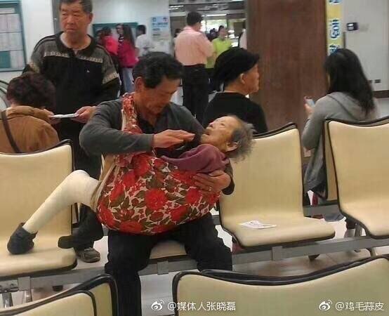 【一張在臺灣廣為流傳的照片】一位網(wǎng)友在臺南美醫(yī)院看病,拍到候診室中,一位男子把年邁又行動不便的媽媽背在胸前,細(xì)心、耐心的呵護(hù),畫面令人動容!圖中的男子是臺灣的退休官員丁祖伋,丁祖伋的前同事表示,他一直 ...