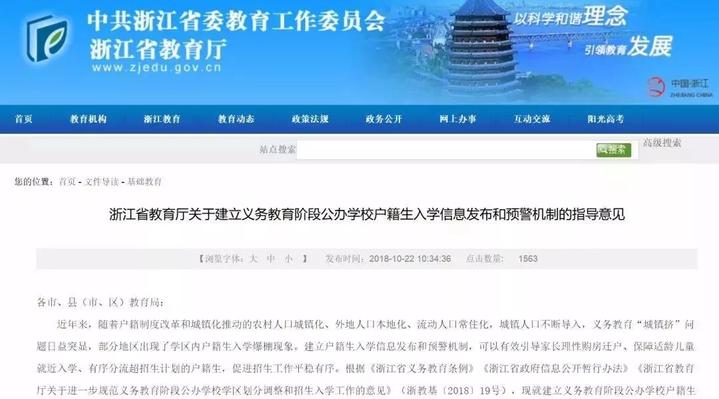 重磅!!!浙江省要建立戶籍生入學信息發(fā)布和預(yù)警機制,家長們買的學區(qū)房可能要涼了?! 浙江省將建預(yù)警機制 提前了解熱門學區(qū)招生情況 近年來,隨著戶籍制度改革和城鎮(zhèn)化推動的農(nóng)村人口城鎮(zhèn)化、外地 ...