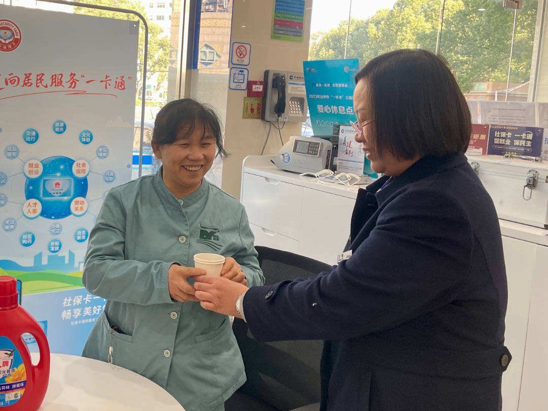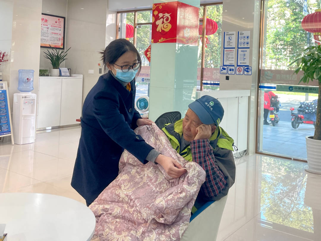 李大姐邊喝水邊贊嘆道:“你們這真好啊!以前我們干活累了要么在街邊角落呆會,要么在便利店站會?,F(xiàn)在我常來你們建行,累了能歇會,打個盹,還有水喝,手機能充電,還能加熱飯菜。上次我睡著了,你們還貼心地給我蓋了被子。真好!謝謝你們!”
