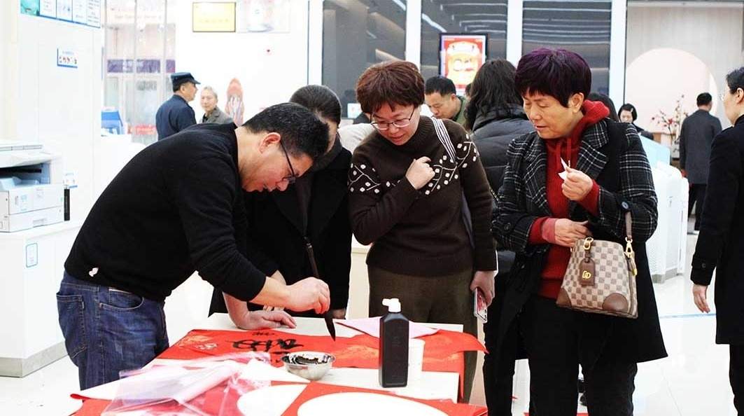 “我們過年都喜歡紅紅火火,現(xiàn)場寫春聯(lián)送福活動比較接地氣,我們辦理了業(yè)務(wù),也領(lǐng)到了對聯(lián)?!笨蛻舢攬龇Q贊道。