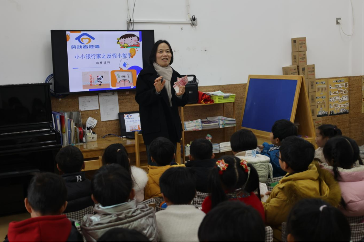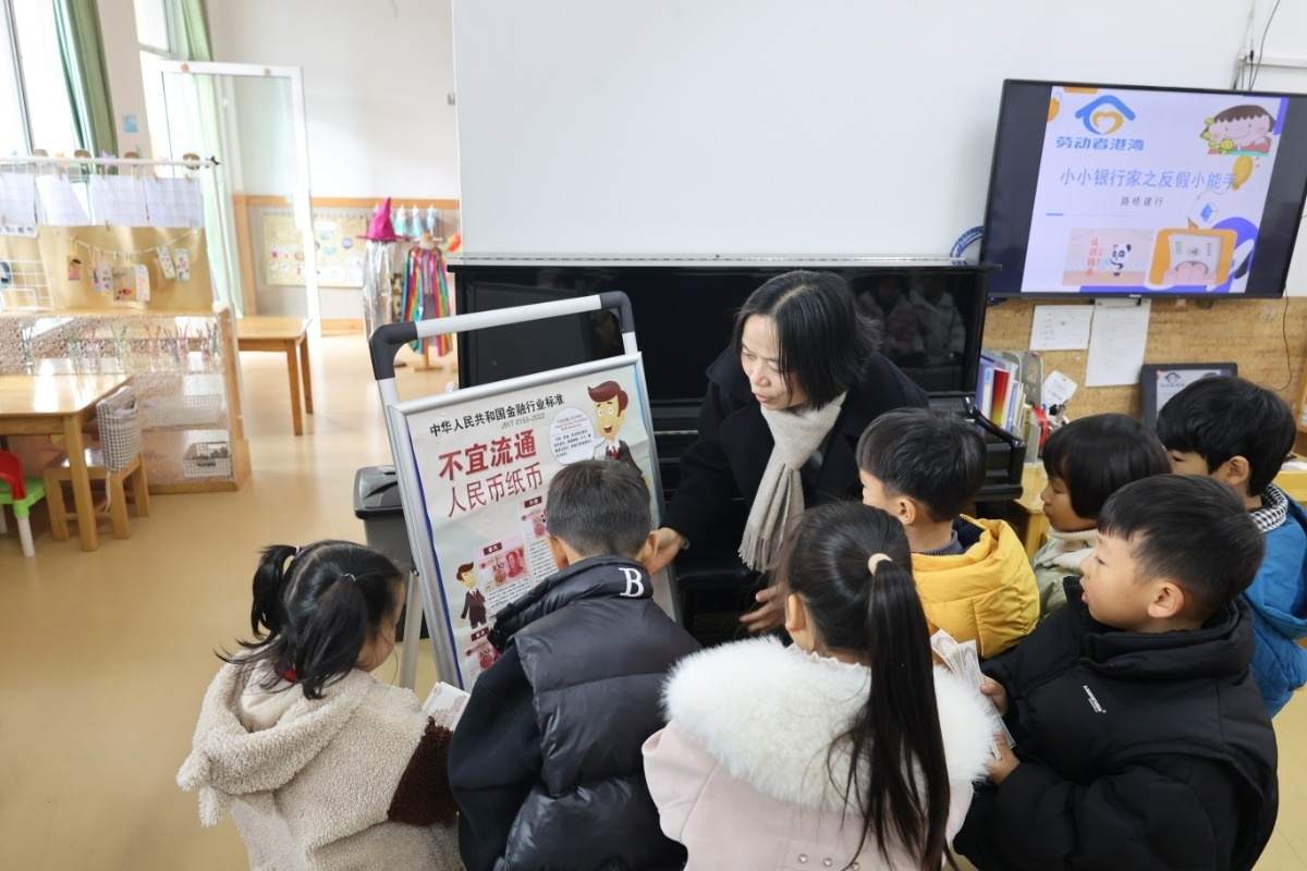 近日,路橋建行工作人員化身“老師”,走進(jìn)路橋區(qū)壹加壹幼兒園,開展“小小銀行家之反假小能手”活動(dòng),為孩子們講解愛護(hù)人民幣、假幣的危害和如何識(shí)別假幣遠(yuǎn)離詐騙等方面的內(nèi)容。