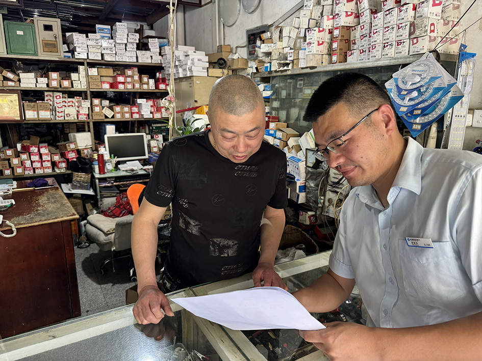 ▲ 建行臨海支行為紫陽街臨街商鋪辦理“共富貸”產(chǎn)品,解決商戶資金周轉(zhuǎn)煩惱,助力構(gòu)建“共同富?!笔痉秴^(qū)。