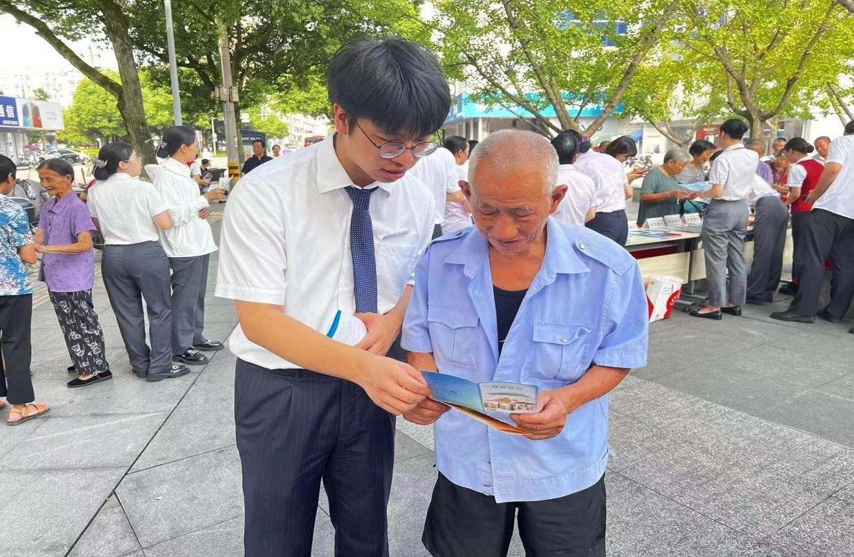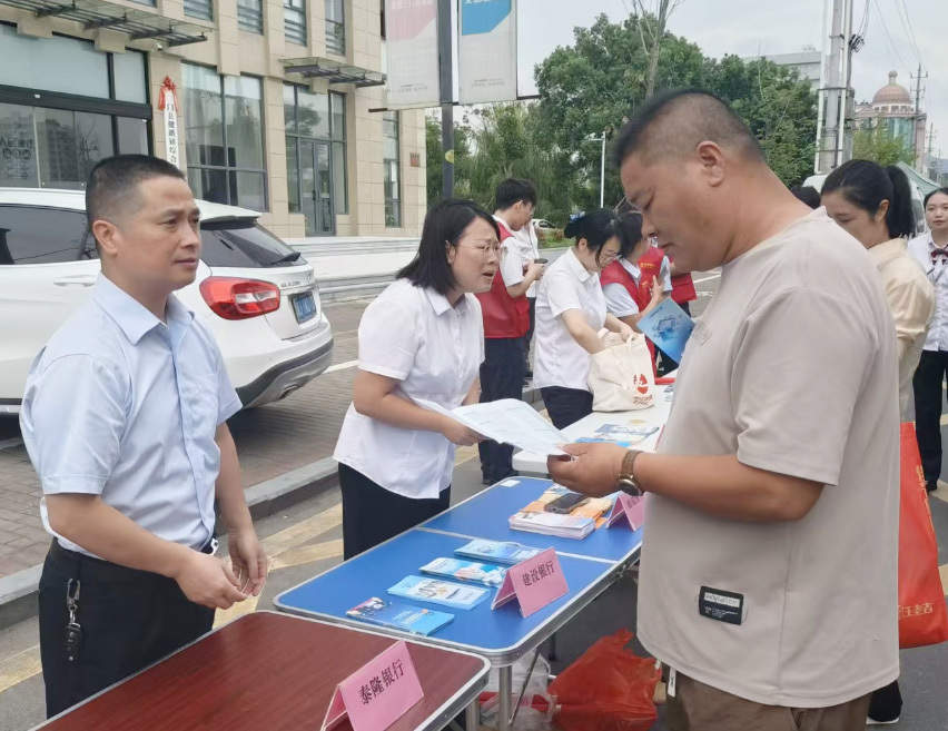 三門建行核電支行業(yè)務(wù)人員向往來(lái)群眾分發(fā)宣傳手冊(cè)