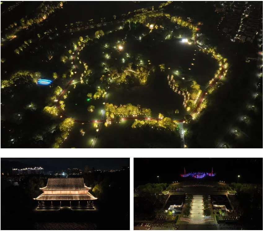 白天的靈湖景區(qū),是人們休憩賞景的“城市會(huì)客廳”,夜晚則化身為市民漫步、奔跑、騎行的健身俱樂部。 為此,項(xiàng)目團(tuán)隊(duì)在景區(qū)夜景亮化上也下足了功夫。