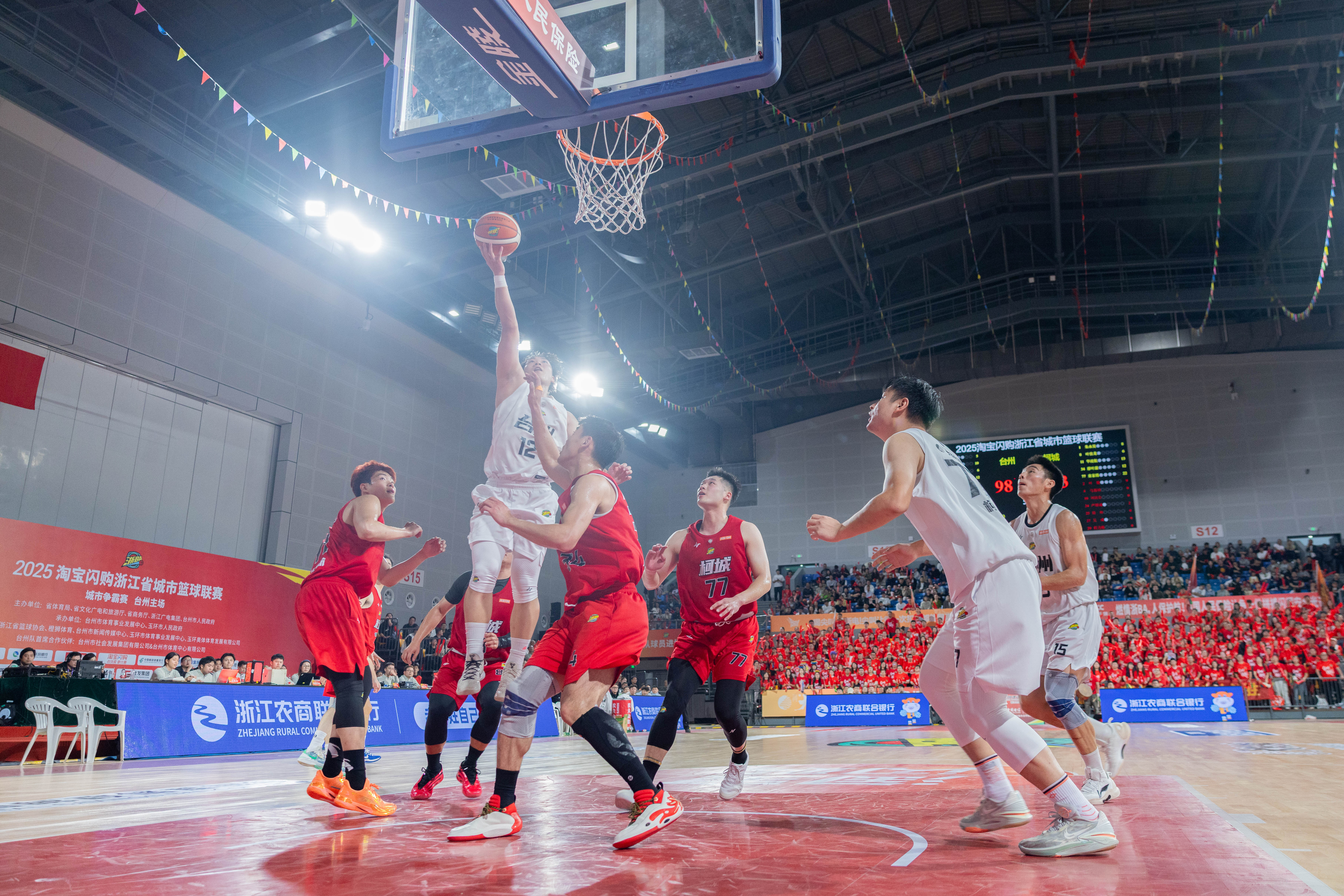 臺州隊(duì)連續(xù)得分,總分拉升至98分之際,蔡翔羽2分命中,總分來到100分,與此前對戰(zhàn)慶元隊(duì)時(shí)的102分僅差2分。而此時(shí),柯城隊(duì)也開始了反擊,臺州隊(duì)找準(zhǔn)機(jī)會再度出擊,臺州隊(duì)柯振華、鄭宇航接連命中2分,臺州隊(duì)以104:84鎖定勝局,再度刷新在“浙BA”城市爭霸賽賽場上的單場得分紀(jì)錄。