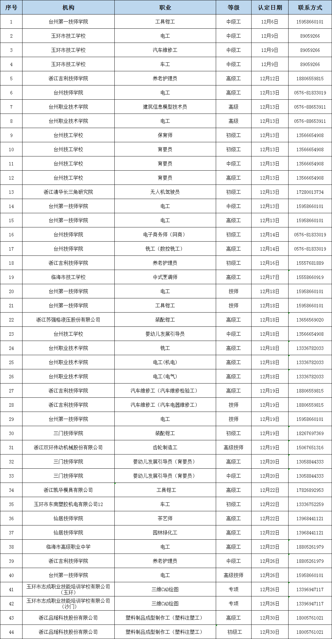 12月 臺(tái)州各地將陸續(xù)舉辦 27場(chǎng)職業(yè)技能培訓(xùn) 想提升技能的你 快來(lái)報(bào)名參加吧!