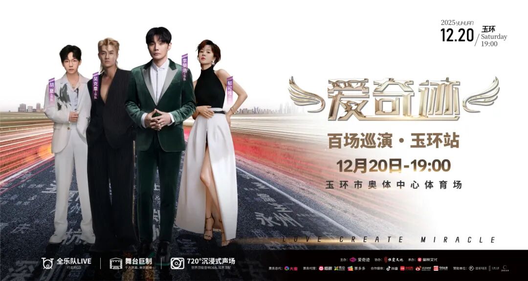 愛(ài)奇跡百場(chǎng)巡演 · 玉環(huán)站 倒計(jì)時(shí)開(kāi)啟 2025年12月20日 19:00 玉環(huán)奧體中心體育場(chǎng) 我們共同奔赴一場(chǎng) 盛大的聲光之約 以下為你整理好一份 貼心觀演指南 助你順利赴約、沉浸享受~ 演出時(shí)間 2025年12月20日19:00 演出地點(diǎn) 玉環(huán)奧體中心體育場(chǎng) 演出陣容 李榮浩 吳克群 郁可唯 胡夏 檢票時(shí)間 17:00-20:30 (檢票截止時(shí)間以現(xiàn)場(chǎng)實(shí)際為準(zhǔn))