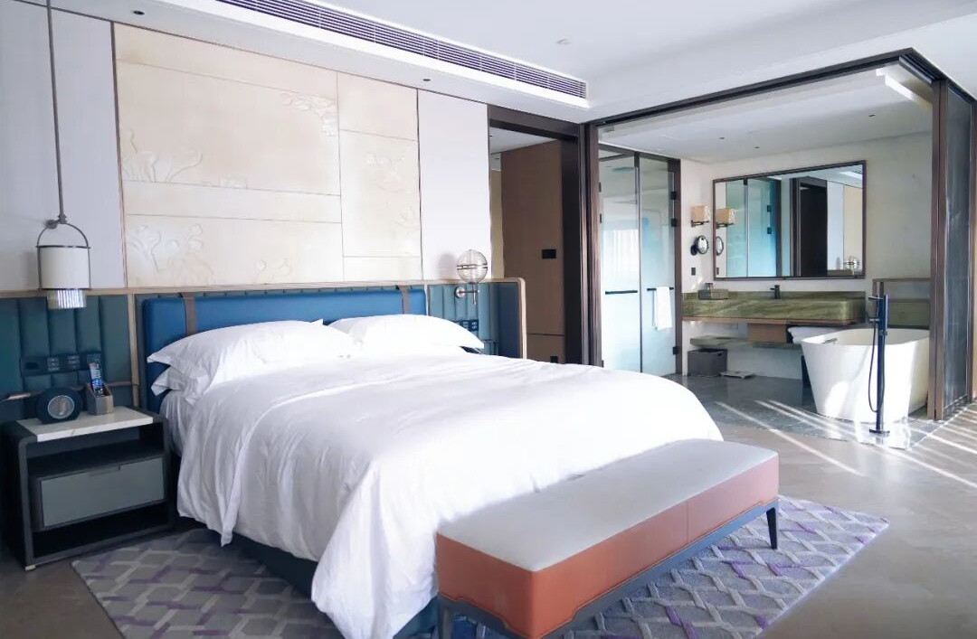目前,酒店樣板間已裝修完畢,從材質甄選、工藝細節(jié)到動線布局,均經歷多輪調整與提升,彰顯希爾頓酒店的高端品質與靜謐湖畔的居住美學。