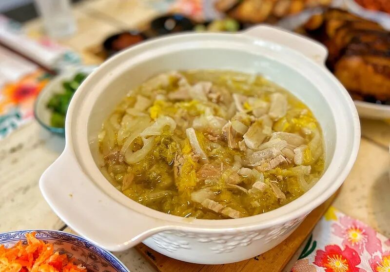 隨著冷空氣一路南下 南方的朋友們也開始以食驅寒 南京人會在小寒端出一鍋菜飯 霜打后的“矮腳黃”青菜 配上板鴨、咸肉、香腸 與糯米、生姜粒一起燜煮