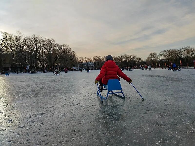 你可以在如鏡的冰面上 用冰刀留下雀躍的痕跡 也可以腳搭前車,劃動雙臂 加入“貪吃蛇”般的冰車隊伍 或者踩一踩冰上自行車 感受下會不會“打滑式”前進 冰場上 人來人往,熱鬧非凡 原來“冰嬉”二字 藏著隆冬里最簡單的樂趣