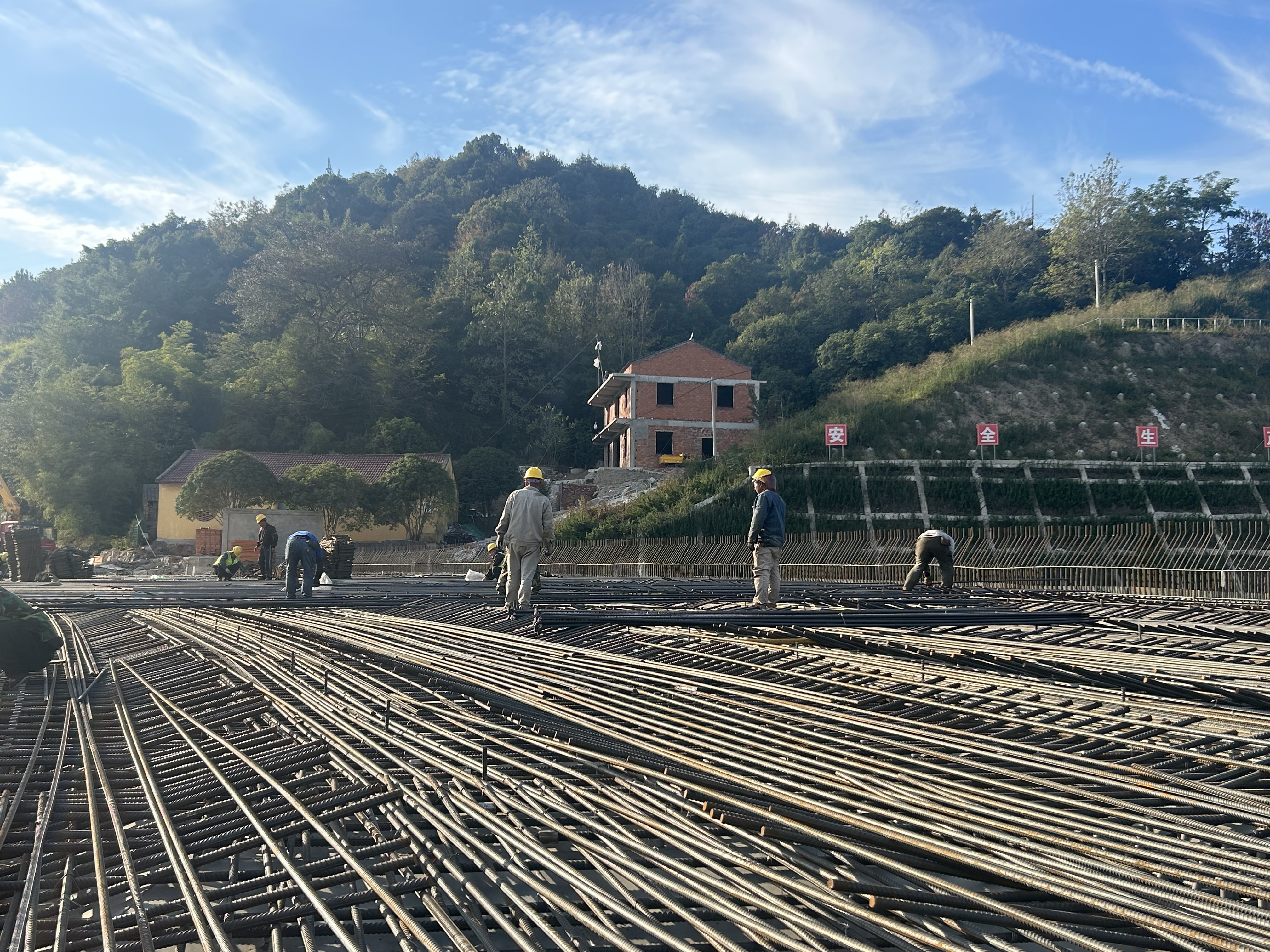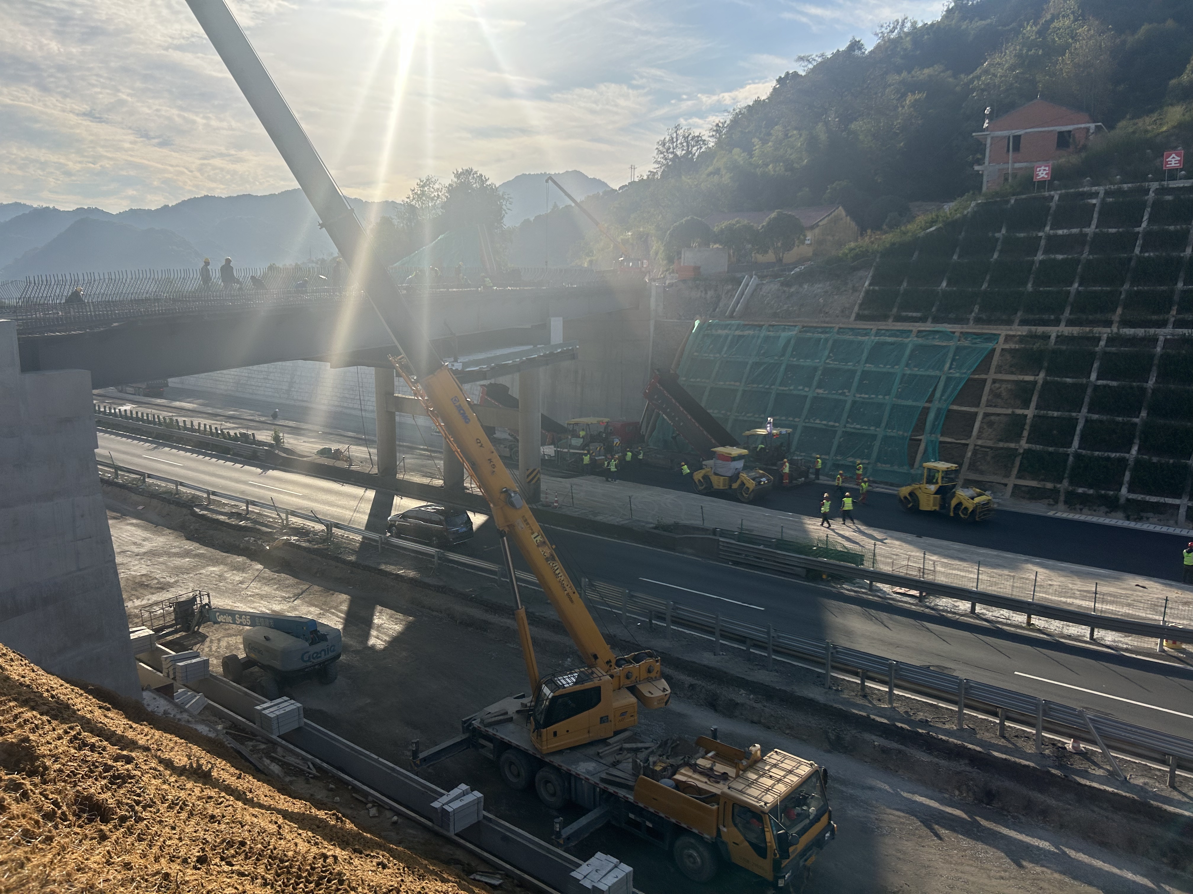 在臨海南互通這個(gè)“舞臺(tái)”上,上演了一場(chǎng)鋼筋與混凝土的協(xié)奏曲。橋梁架設(shè)的吊裝口令、橋面鋪裝的機(jī)器轟鳴、護(hù)欄焊接的璀璨焊花、交安設(shè)施精準(zhǔn)定位的標(biāo)線——多工種、多工序如同交響樂團(tuán)的各個(gè)聲部,在指揮家的調(diào)度下交叉作業(yè)、無縫銜接。