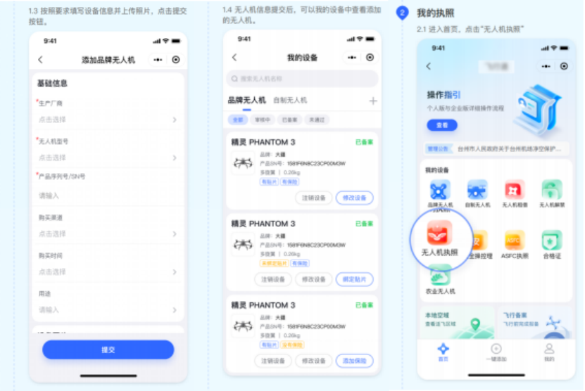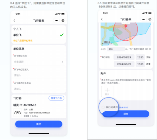 03 飛行先備:完成登記與申請(qǐng)報(bào)備 給無人機(jī)做實(shí)名登記是合法飛行的第一步,操作很簡(jiǎn)單,分兩步就能完成: