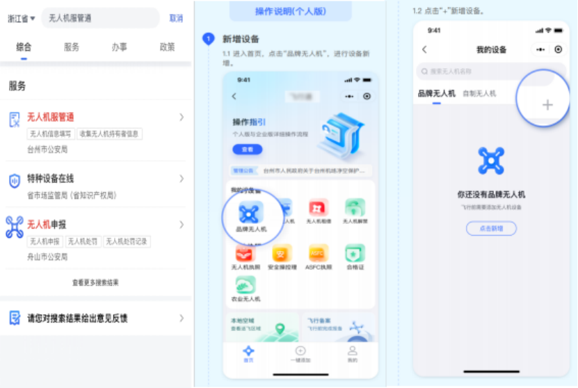 (二)浙江本地登記:打開“浙里辦”App,搜索“無人機(jī)服管通”,按照提示完成本地登記即可(也可以用支付寶掃描對(duì)應(yīng)二維碼辦理)。