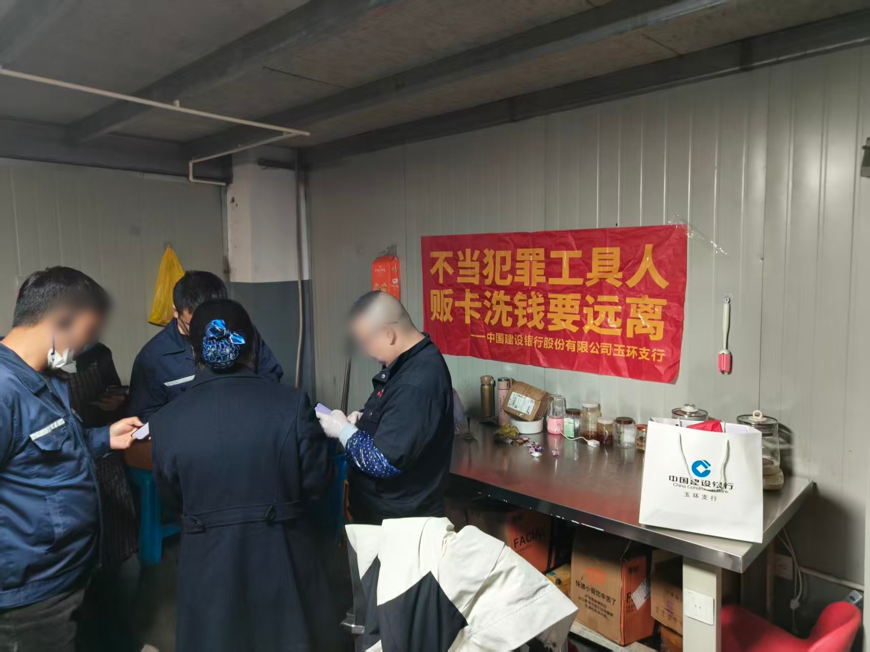 然而隨著新春臨近,企業(yè)訂單排期逐漸緊湊,員工們“釘”在生產線趕工忙生產,不僅有新入職員工急需辦理工資卡,不少老員工也面臨年終獎理財、資金安全防護等需求,同時,春節(jié)期間高發(fā)的電信詐騙風險也是銳利機械負責人的擔心之處。了解到企業(yè)與員工的雙重訴求后,建設銀行玉環(huán)支行迅速派遣青年骨干組成張富清“新年特別”金融服務隊,帶著移動辦卡設備、金融知識手冊,走進企業(yè)廠區(qū)提供“零距離”服務。