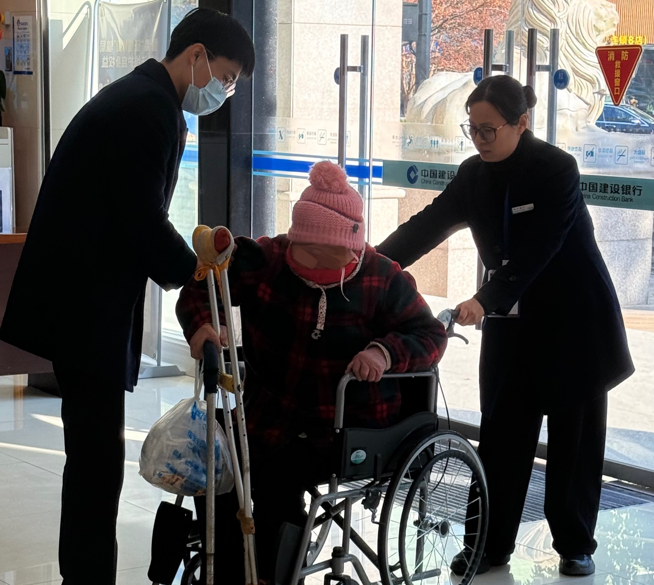 “阿婆,慢點(diǎn)走,我扶您!”近日,一位拄著拐杖的老奶奶腳步蹣跚地走進(jìn)中國(guó)建設(shè)銀行三門(mén)支行營(yíng)業(yè)部,每一步都顫巍巍的,顯得格外吃力。正在廳堂巡視的大堂經(jīng)理小任見(jiàn)狀,立刻快步迎上前,伸出雙手穩(wěn)穩(wěn)扶住老人的胳膊,輕聲安撫道:“阿婆,您別著急,慢慢走,有我呢。”考慮到老人行動(dòng)不便,小任轉(zhuǎn)頭對(duì)身旁的同事喊道:“麻煩幫我從勞動(dòng)者港灣推一把愛(ài)心輪椅過(guò)來(lái),謝謝!”