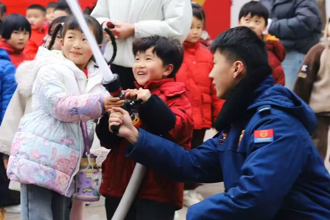 當(dāng)天,孩子們圍在消防車旁,聽消防員講解各類救援裝備功能;在消防員的指導(dǎo)下,體驗了高壓水槍,感受水流噴射的力量;走進(jìn)榮譽室,認(rèn)真聆聽錦旗與獎牌背后的救援故事。