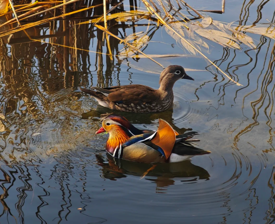 △圖自網(wǎng)友@碎碎念 湖面上游著一對鴛鴦 就像春天寫在水面上的一個“好”字
